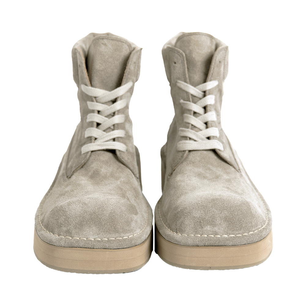 [갓필드_오트밀] 해진 전투화를 연상시키는 요소들을 함축적으로 녹여내어 좀 더 차분한 빈티지 무드로 즐길 수 있도록 흥미로운 디테일로 조합된 부츠입니다. *소재 - Body : cow suede - Bottom : EVA *사이즈 - wide-02 fit - 와이드 팬츠에 어울리는 빅 볼륨 (굽높이 4.5cm) - 사이즈 추천▼ (확인 필수!!!) 평소 신으시는 신발의 가장 작은 사이즈 대비 발볼/발등 넓고 높으시면 -5사이즈 발볼/발등 좁고 낮으시면 -10사이즈 다운 (다운사이징하셔도 보통 작지 않습니다) *주문 제작 상품으로, 제작 기간은 결제 후 영업일 기준 약 12일 소요됩니다. *제품상자는 자사의 제품임으로 훼손시 환불이 불가합니다.