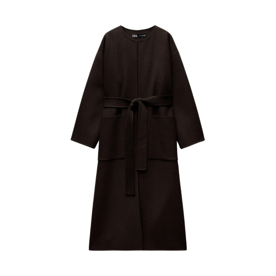 (W) 자라 ZW 컬렉션 울 블렌드 벨티드 코트 브라운 말