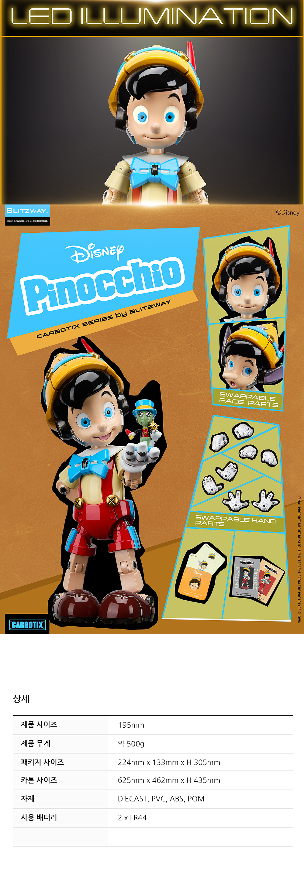 [Product Detail] Weight Approx. : 500g (Product only) / 1.2kg (Including Package) Dimension Approx. – Package : W 313 mm x D 234 mm x H 140 mm – Carton : W 655 mm x D 500 mm x H 450 mm [12 pc / 1 carton] *Dimension and weight could be changed later. [Materials] – Figure: Die-cast, PVC, ABS, POM – Package : PET Blister, Color EPP + Color Box