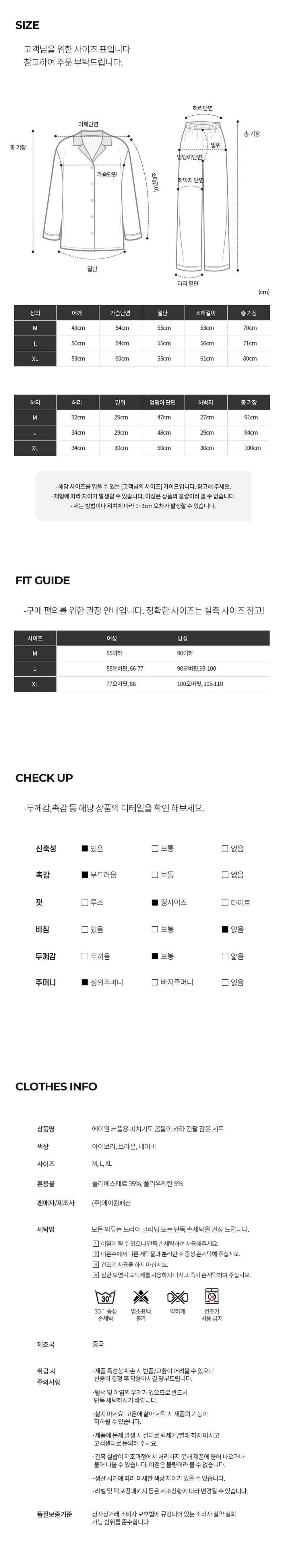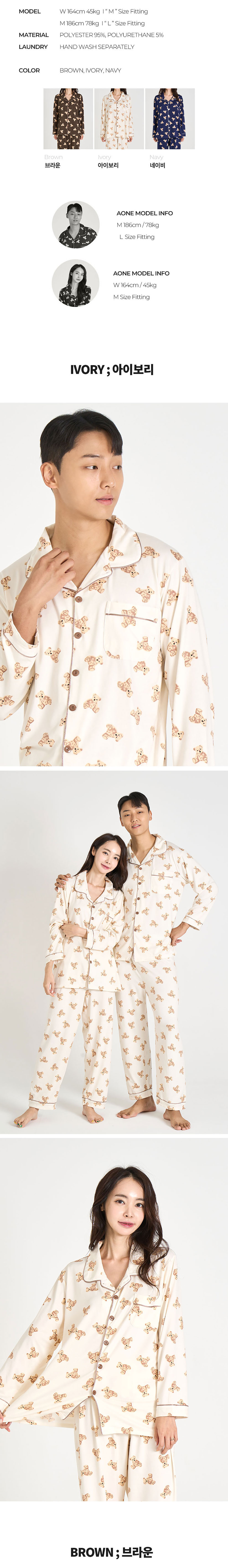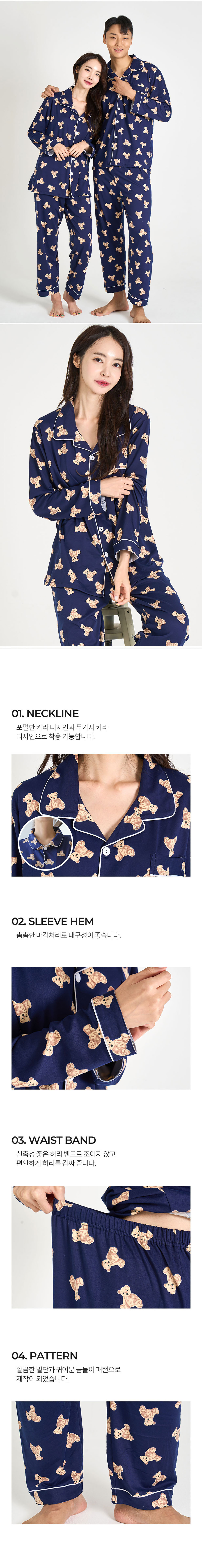 [3% 적립] 에이원 유니섹스 피치 기모 곰돌이 카라 긴팔 잠옷 세트 네이비