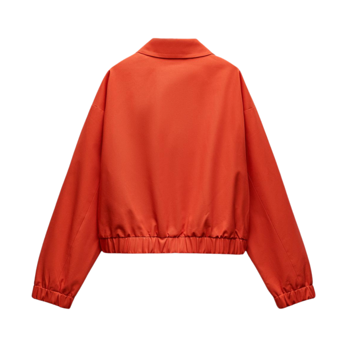 (W) Zara Zip-Up Bomber Jacket with Pockets Red Orange