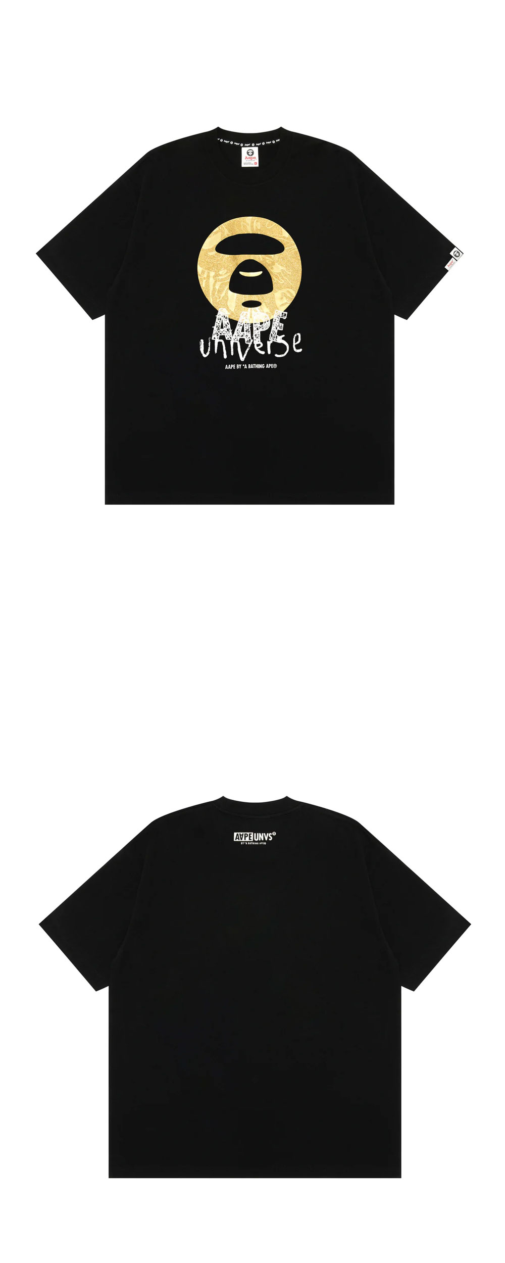 마치 달을 연상시키는 듯한 아름다운 문페이스 로고가 매력적인 에이프의 베이직 유니버스 티 블랙입니다. - 글리터 프린팅 - AAPE UNIVERSE 로고 - 편안한 착용감 - 박시한 실루엣