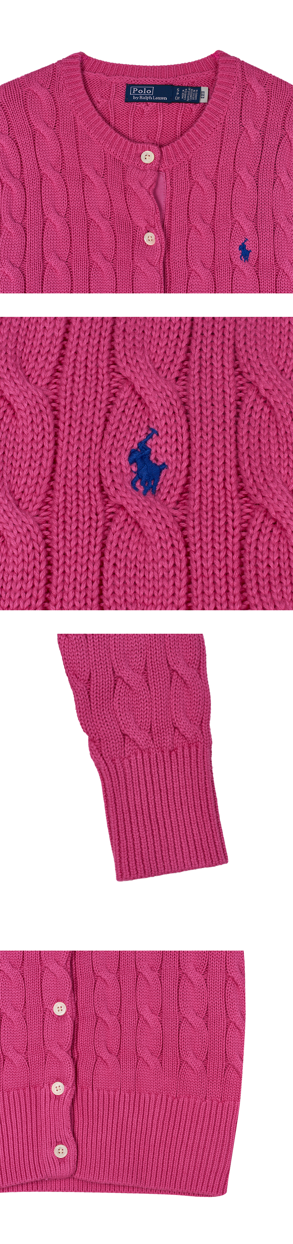 폴로 랄프 로렌 우먼 케이블 니트 코튼 크루넥 가디건 핑크 - 25SS