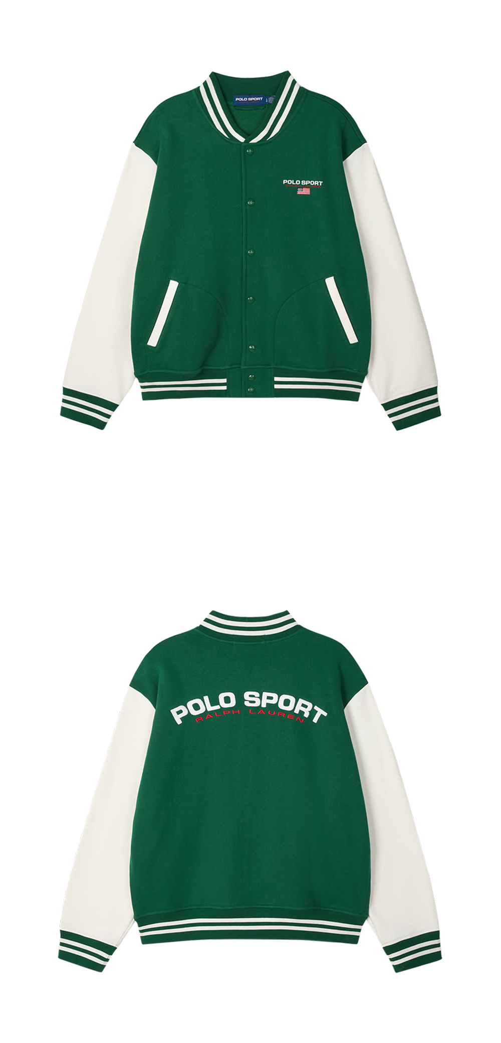 [15%적립] Polo Ralph Lauren Polo Sports Fleece Baseball Jacket Tennis Green Deckwash White - 25SS