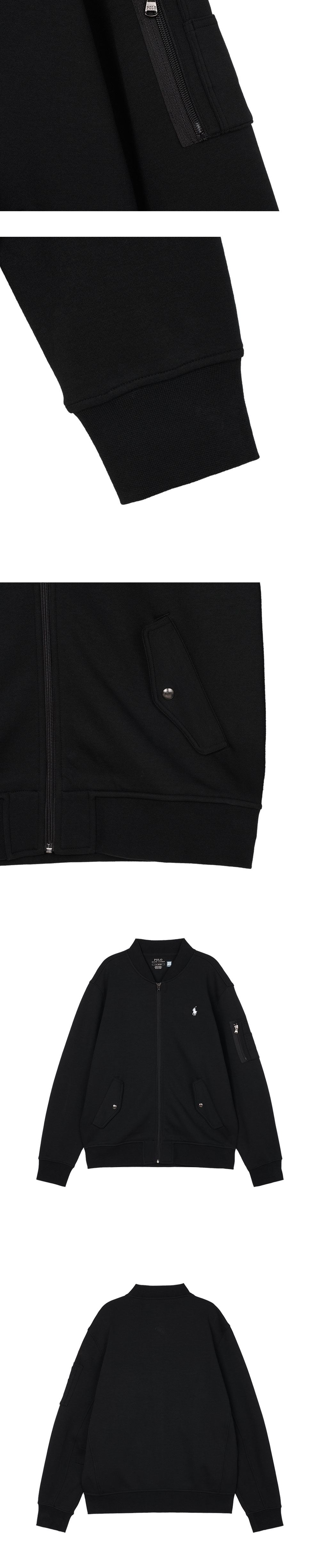 < KREAM은 랄프로렌 코리아 공식 파트너사로 모든 상품은 랄프로렌 코리아(유)에서 공급받은 정식 수입 제품입니다 > 매끄러운 코튼 블렌드 패브릭과 시그니처 포니 자수가 조화를 이루는 폴로 랄프 로렌의 더블 니트 봄버 자켓 블랙 - 25SS입니다. - 왼쪽 소매의 지퍼 포켓 디테일 - 왼쪽 가슴의 시그니처 포니 자수 - rib-knit baseball collar - 전면 풀 집 디자인