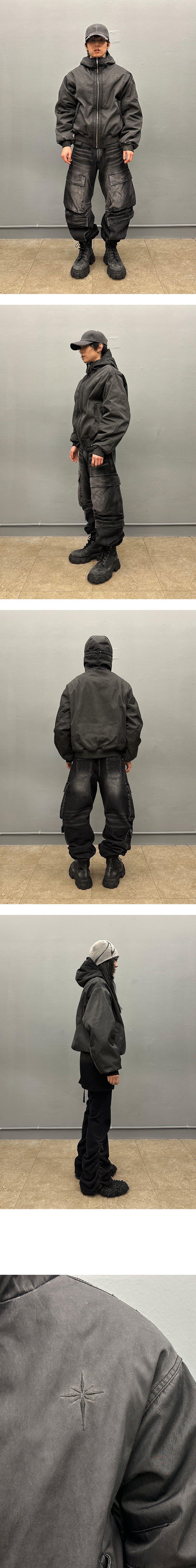 비엘알 다이드 스노우플레이크 로고 워싱 푸퍼 자켓 그레이