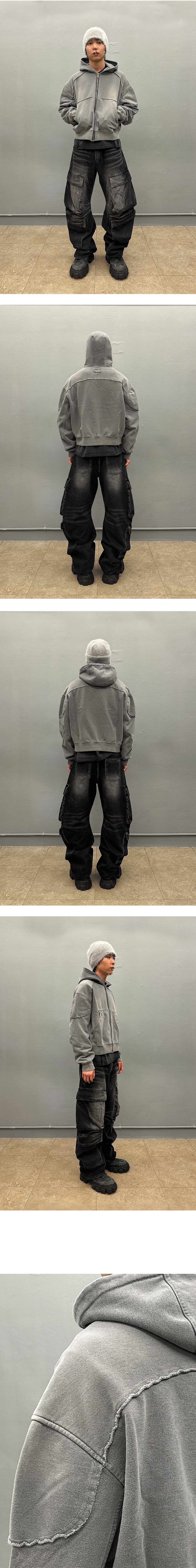 비엘알 블리치드 커브드 인시전 스웻 후디 집업 그레이