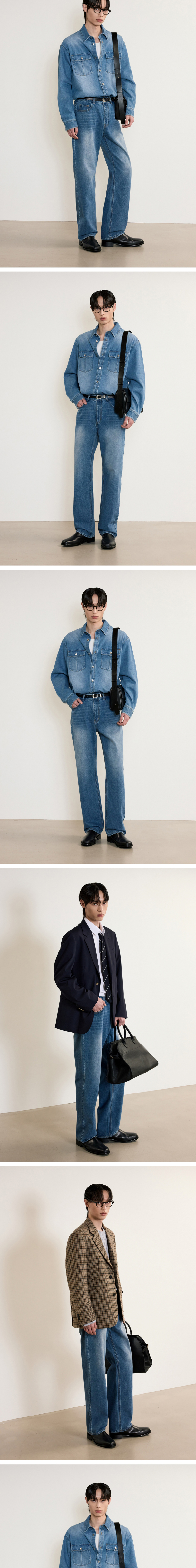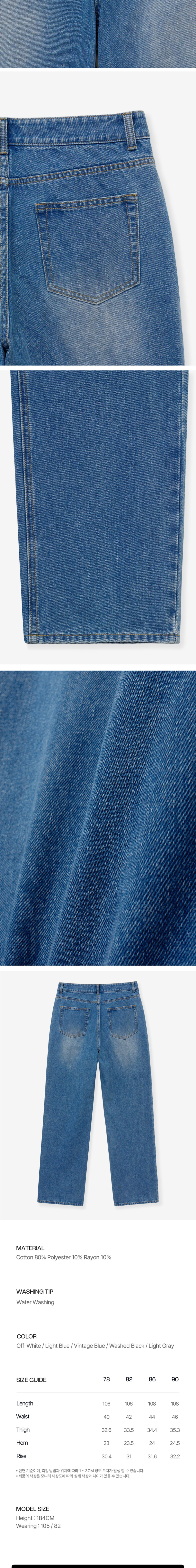 티엔지티 빈티지블루 세미 와이드 스트레이트핏 데님 팬츠