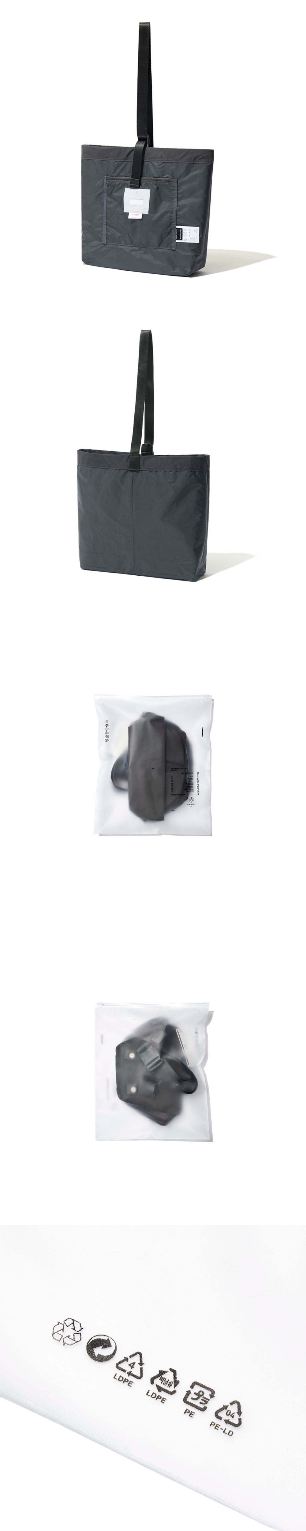 원단은 수년간 연구로 직접 개발하여 제작한 ROOTSCOPE® GIM 는 솔라 트윌 조직의 나일론 원단으로 바스락 거리는 터치감과 가볍지만 견고한 것이 특징입니다. DWR 가공과 래미네이팅 후가공된 3 Layer 원단 및 YKK® AquaGuard 지퍼를 사용하여 생활 발수 및 방수에 알맞게 제작되었습니다.