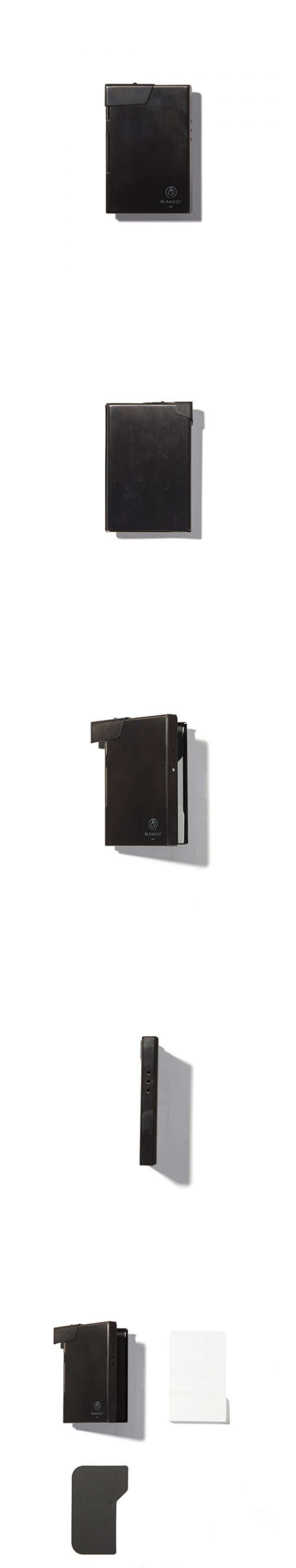 MU TECHNO사의 고강도 스테인레스 스틸을 가지고 모든 공정을 수공예 작업으로 제작한 명함,담배 겸용 케이스입니다. 흑염법 방식으로 표면을 가공하여, 흑색 산화 피막이 형성되어 표면을 보호하고 있으며 검은 빛을 띄고 있습니다. 또한, 스틸 전용 염료를 사용 하여 BLANKOF 로고가 각인되어 있습니다. 로고는 의도적으로 사용습관과 세월에 따라서 서서히 사라지도록 제작되었습니다. 30장 정도의 명함 수납 혹은 8개비의 담배를 수납할 수 있습니다.
