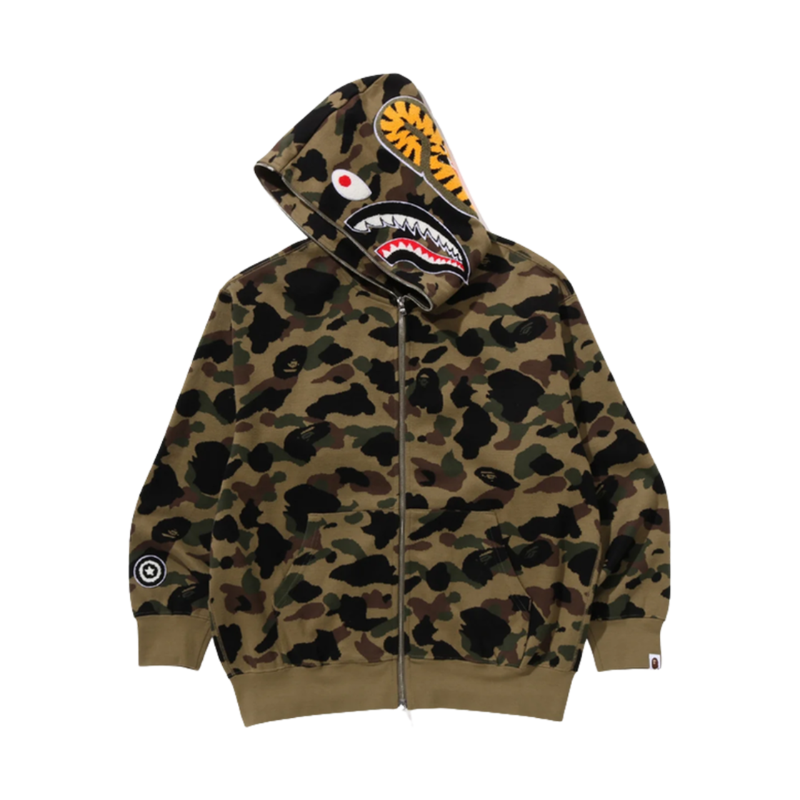 베이프 퍼스트 카모 자카드 샤크 풀 집 후드 그린