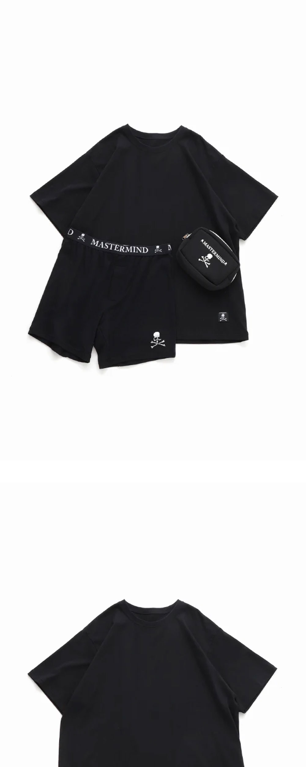 허리 밴딩과 상하의의 해골 로고가 포인트인 마스터마인드의 월드 트렁크 세트 블랙 실버입니다. - 편안한 착용감 - 코튼 100% - 블랙과 실버의 조합