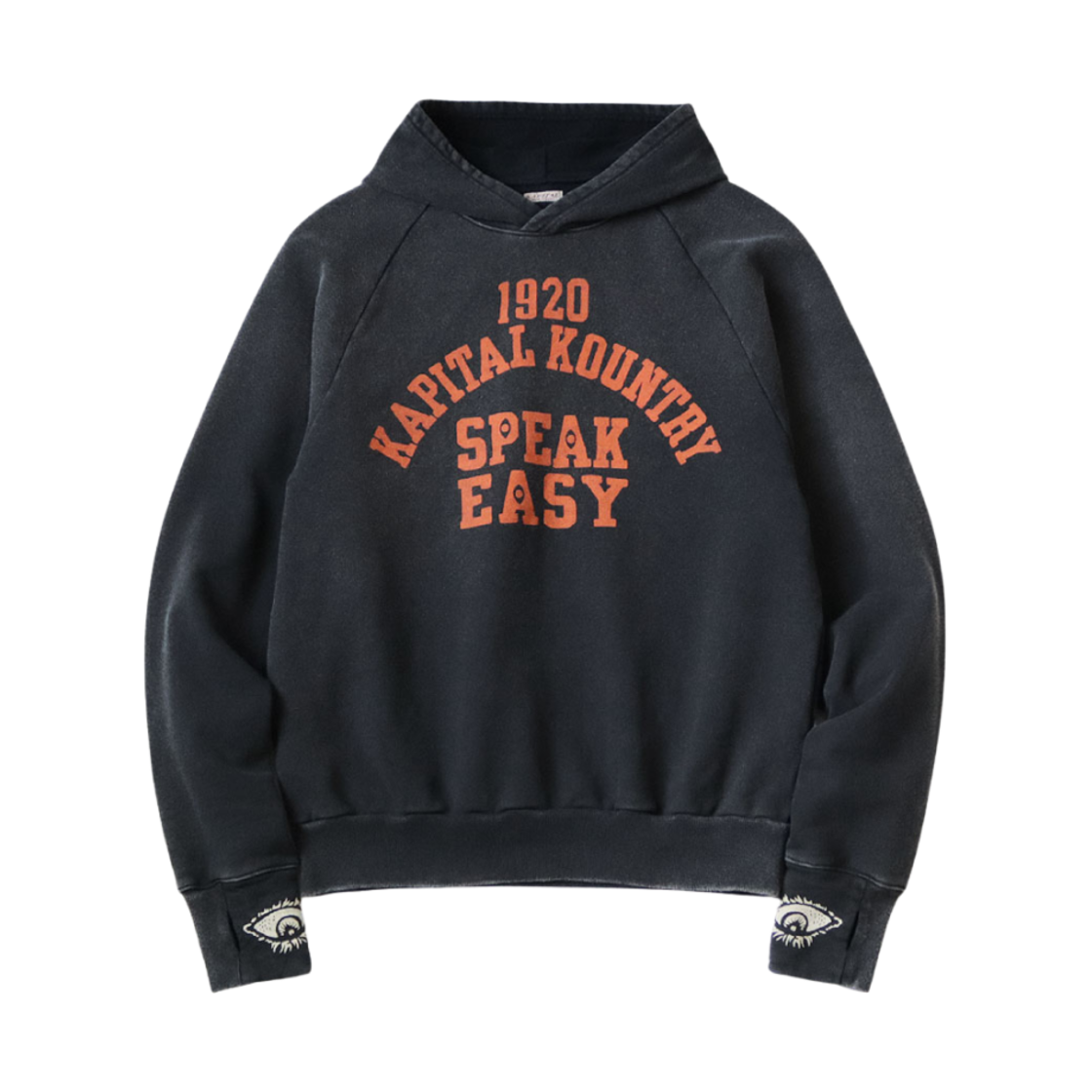 Kapital Raglan Hooded Fleece Sweatshirt Speakeasy College Pt Black
