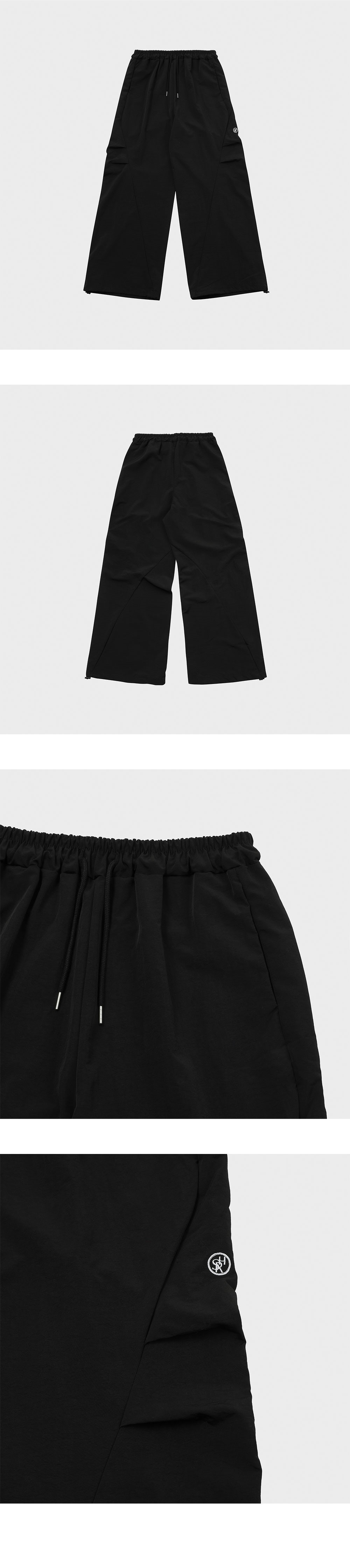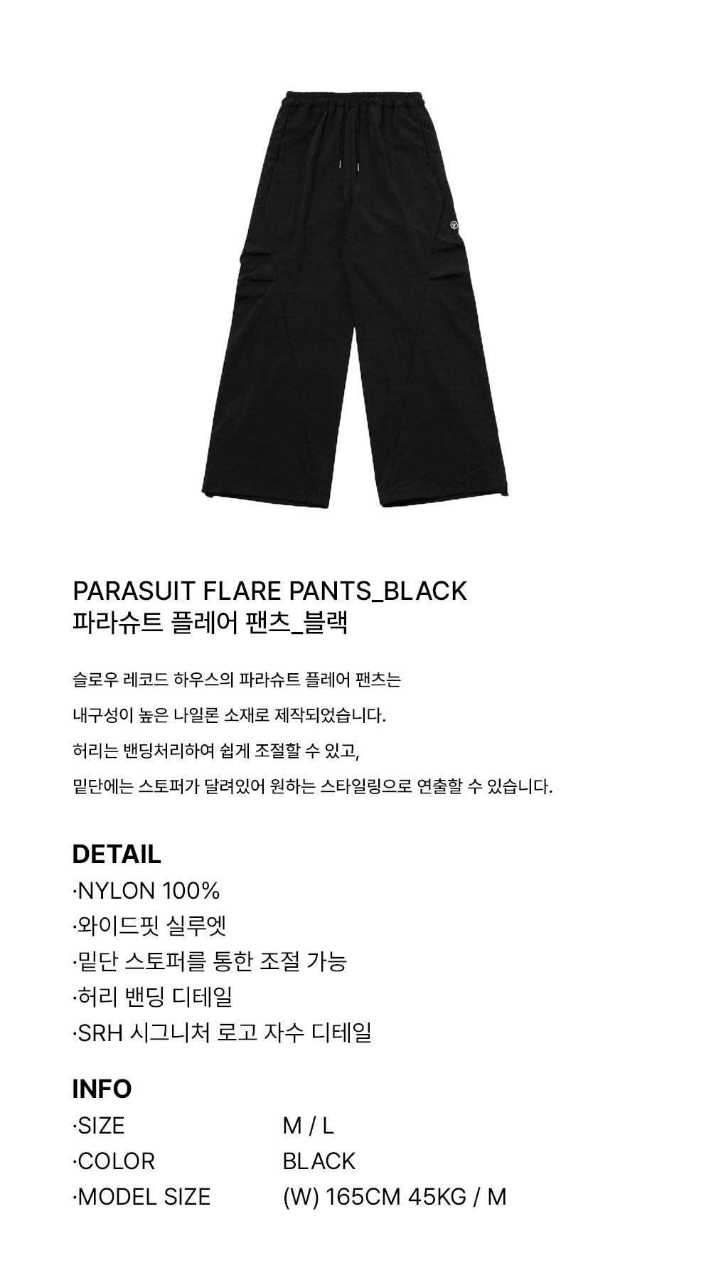 슬로우 레코드 하우스 파라슈트 플레어 팬츠 블랙