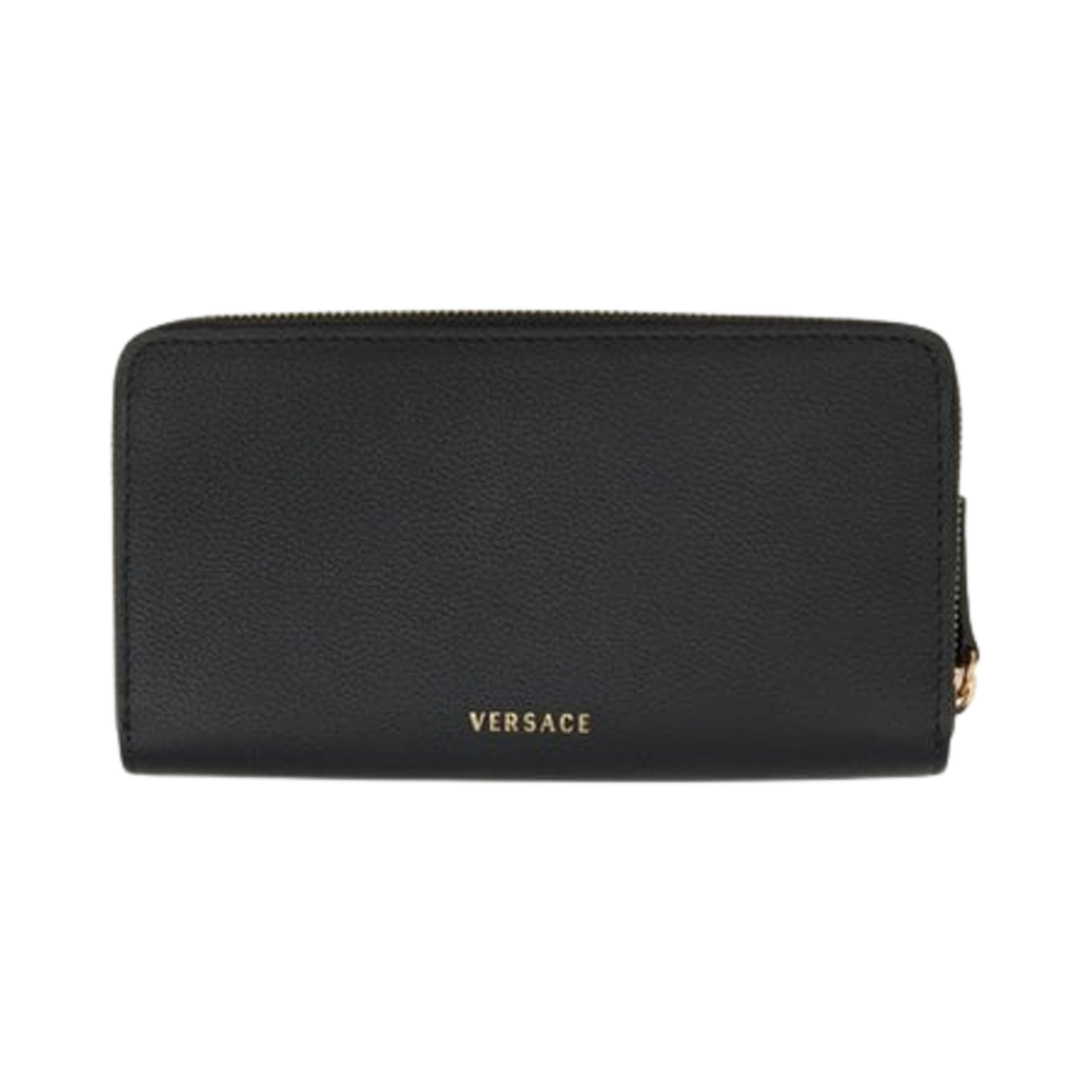 Versace La Medusa Head Leather Zip Long Wallet Black Gold