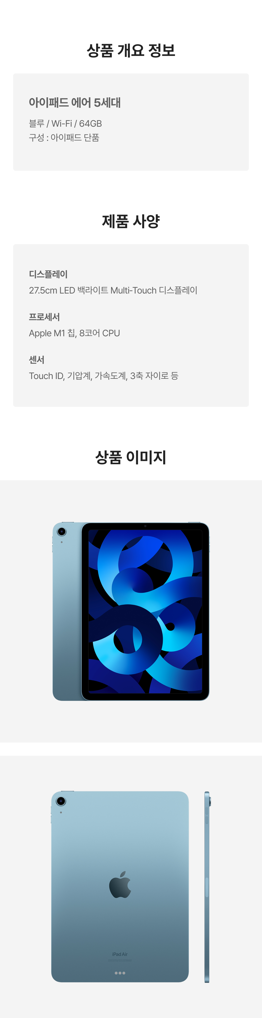 [A등급] 리퍼비시 아이패드 에어 5세대 wifi Apple M1 64기가 블루