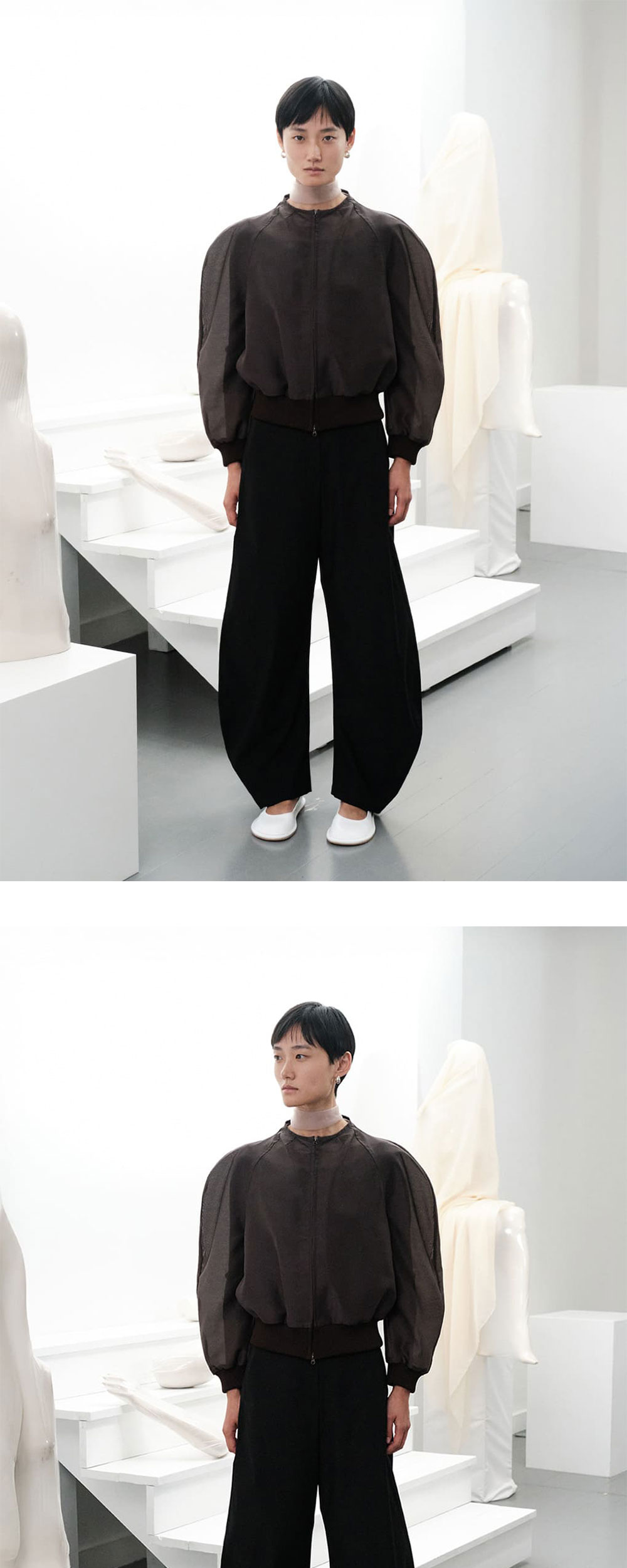 라운드 실루엣이 돋보이는 아모멘토의 우먼 커브드 실루엣 팬츠 블랙입니다. - 볼륨감 있는 커브드 실루엣 - 루즈하게 쌓이는 긴 기장감으로 트렌디한 핏 연출 - 탄탄한 소재로 구조적인 아웃라인 유지 - 불필요한 디테일을 배제해 실루엣 강조 - 단독으로도, 베이직한 아이템과도 감각적인 스타일링 가능