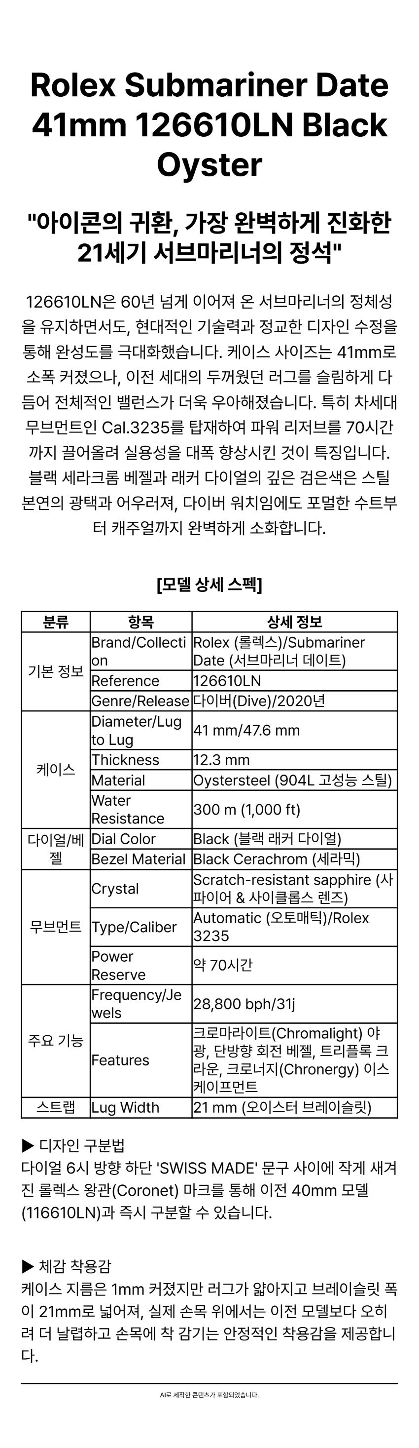 롤렉스 서브마리너 데이트 41mm 126610LN 블랙 오이스터