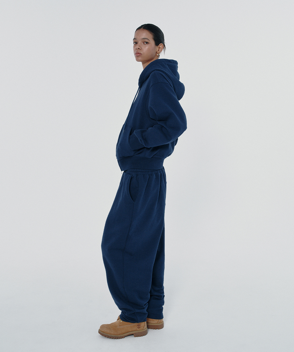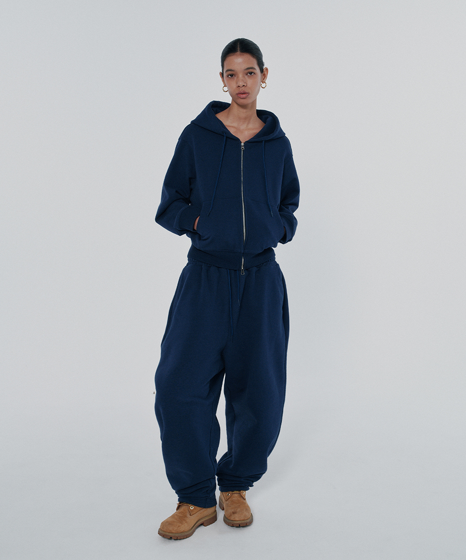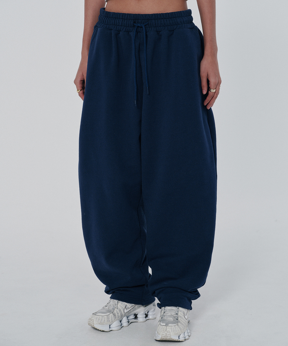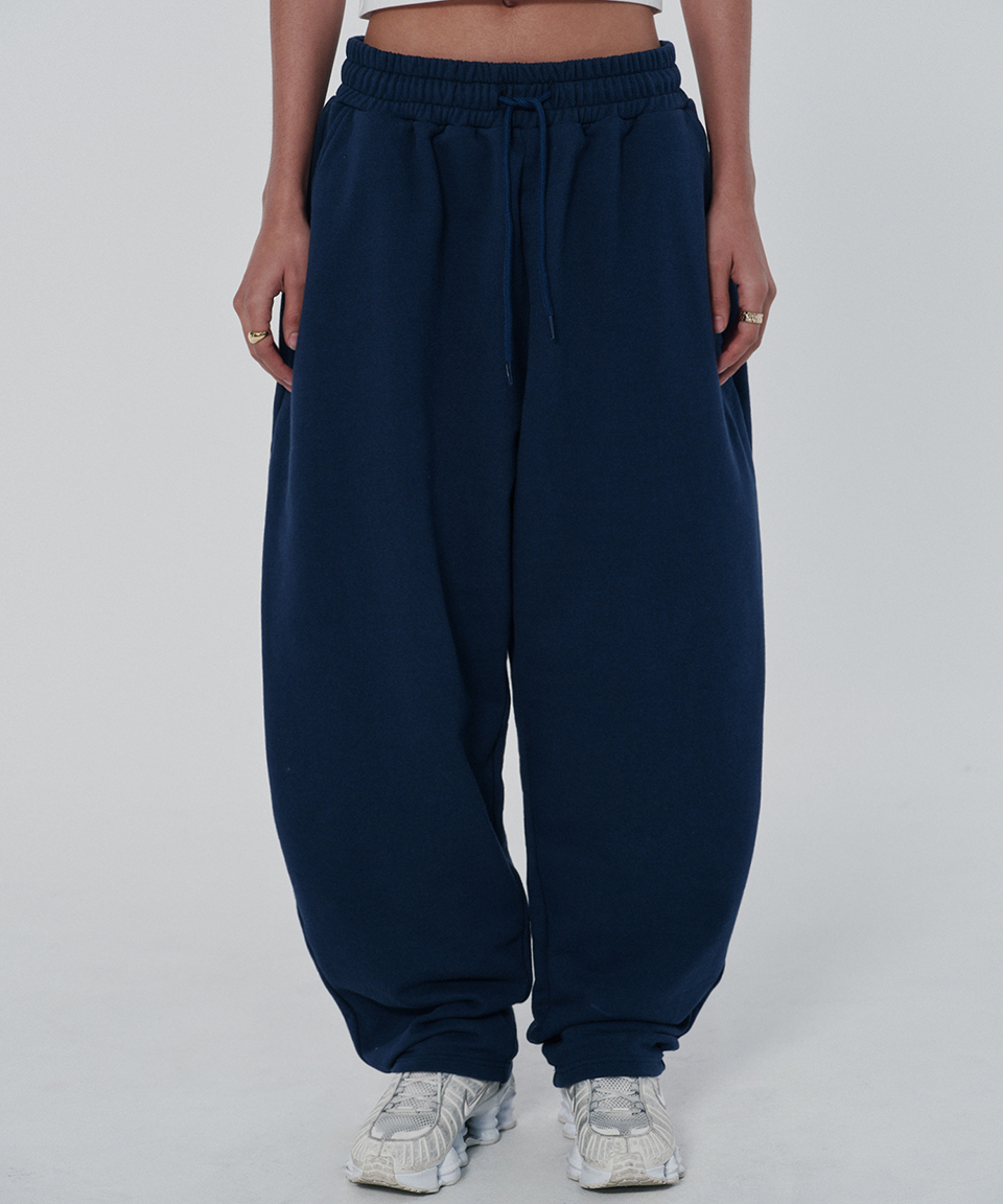 스웨이드 베이직 와이드 롱 팬츠 네이비