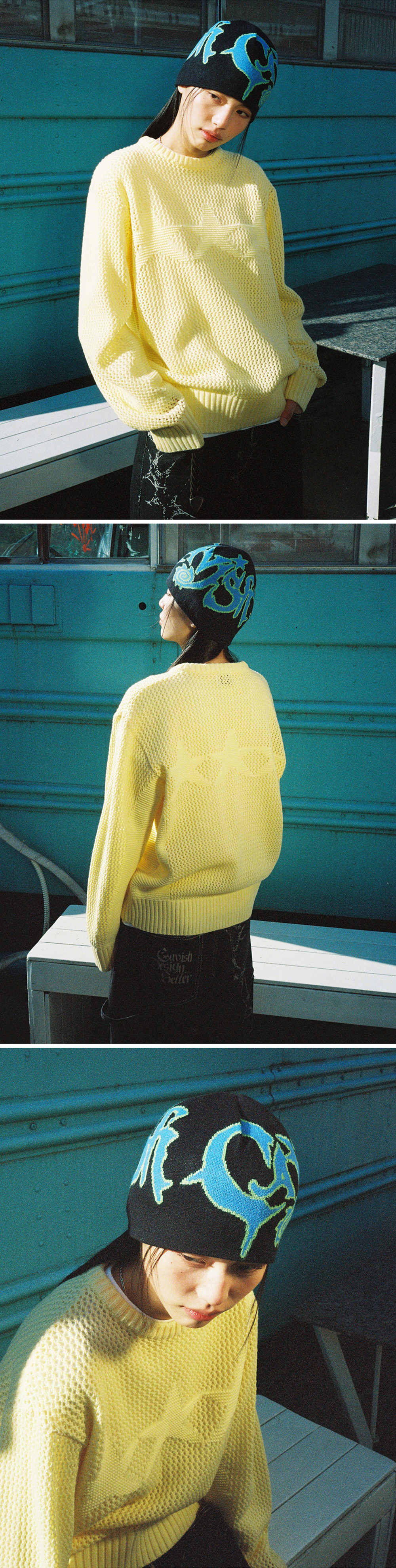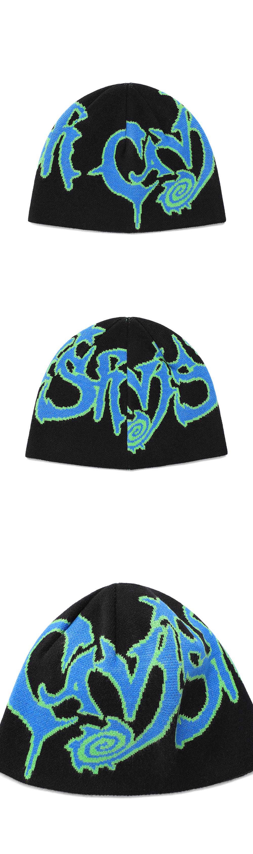 카비시 사이키 자카드 비니 블루