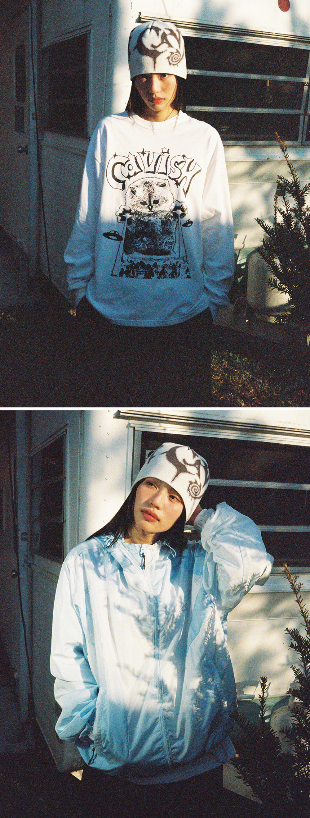 카비시 사이키 자카드 비니 아이보리