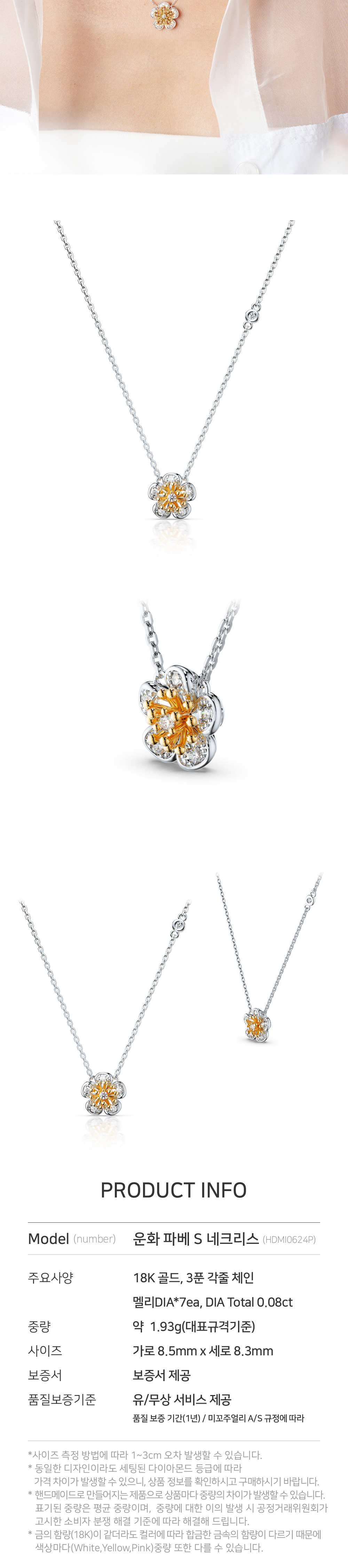 해당 상품 구입시 제작 및 출고에 영업일 기준 최대 14일이 소요됩니다. 언제나, 어디서나 동일한 가치를 인정받는 최상의 스톤만을 셀렉합니다. 미꼬의 스톤 전문가는 뉴욕, 홍콩, 인도, 일본, 벨기에 등 세계 각지에서 매일 소통하며 다이아몬드를 비롯한 스톤을 선택합니다. 3부이상 : GIA 다이아몬드 Only. 3부미만 : G/VS2/VG(별도표기 없을 시 기본등급) H/SI2/VG(일부 온라인 익스클루시브 제품, 제품명에 SI2 표기) 미꼬는 100% 핸드메이드로 외주공정이 아닌 독자적인 장인들의 공정운영으로 고객 한 분 만을 위한 주얼리입니다. 재고상품을 판매하는 것이 아닌 최상의 퀄리티를 가진 오더메이드 파인주얼리를 재공하고자하는 미꼬의 브랜드 규정입니다. 크림에서 판매되는 미꼬의 모든 주얼리는 18k Gold로 제작된 핸드메이드 파인주얼리입니다.