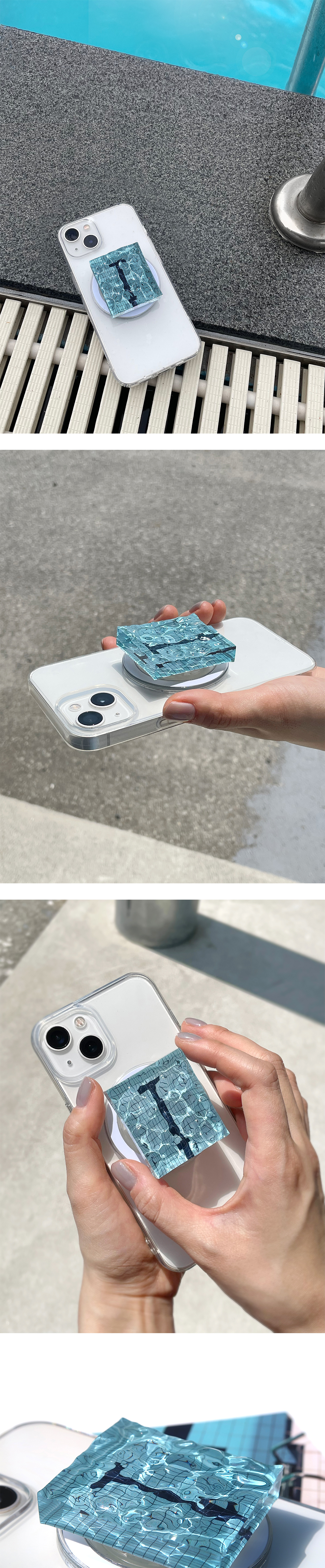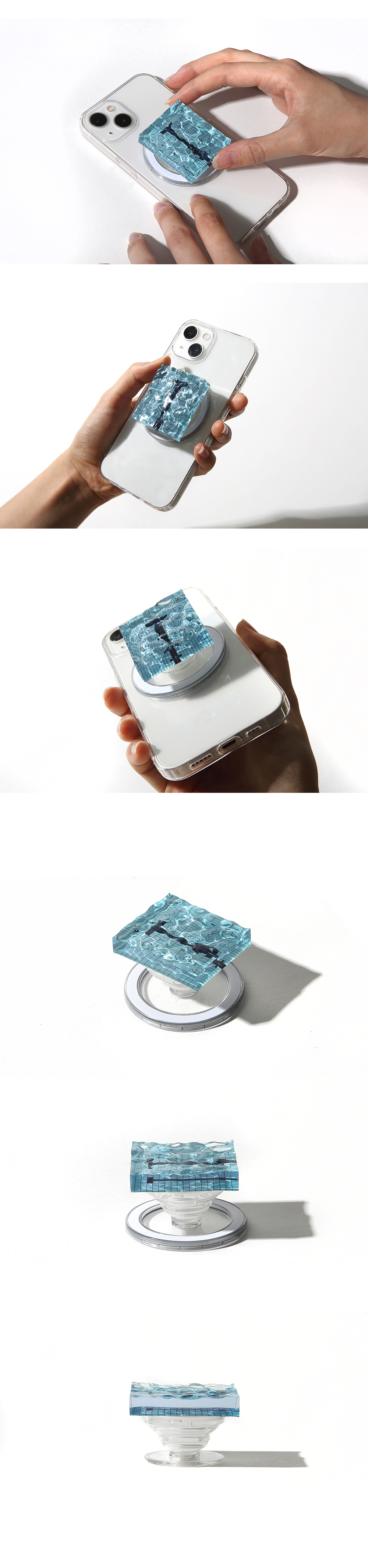 수영장 속에서 우리가 느끼는 감각, 감정들을 일상 속에서도 느낄 수 있도록 일렁이는 수영장의 한 조각을 입체적으로 담은 맥세이프입니다. 수영과 물을 좋아하는 모두를 위한 맥세이프으로 바쁜 일상 속에서도 조각을 보고 만지며 수영장에서 느껴지는 즐거움과 물 속에서의 자유로운 감정을 느껴보세요.