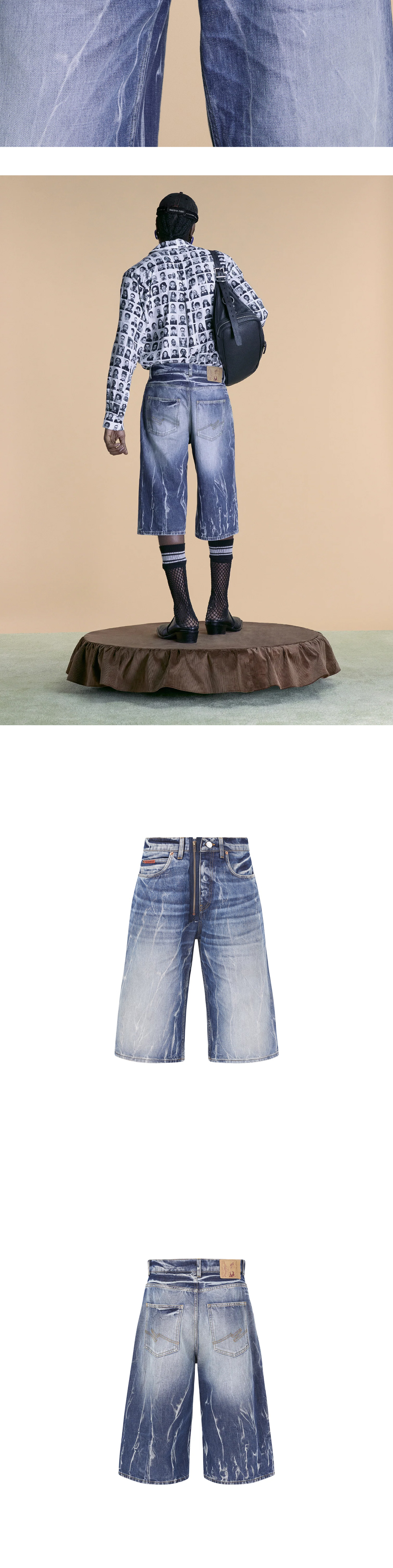 블루 블리치드 워시 처리된 마틴 로즈의 집 진 쇼츠입니다. - 5포켓 디스트레스 데님 반바지 - 노출된 플라이 프런트 지퍼 - 벨트 루프 - 페이퍼 자크론 - 마틴 로즈 데님 워븐 라벨 * 모델 스펙: 188cm, S 사이즈 착용