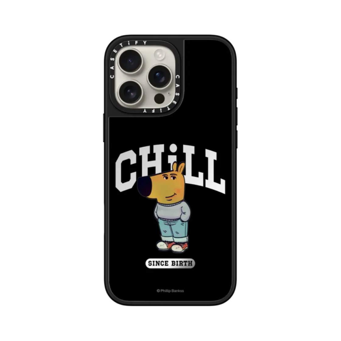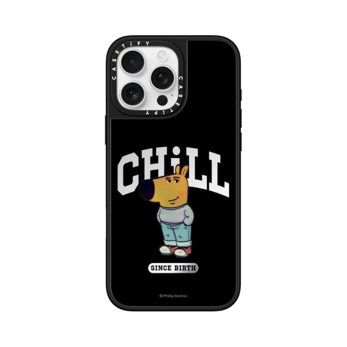 Casetify x Chill Guy iPhone Chill Since Birth Mirror Text Magsafe Mirror Case Silver Mirror Black Bumper