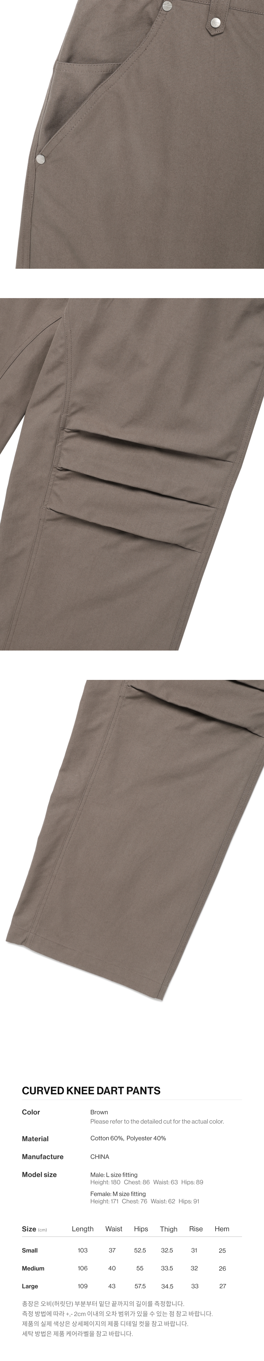 더바이닐하우스 커브드 니 다트 팬츠 브라운