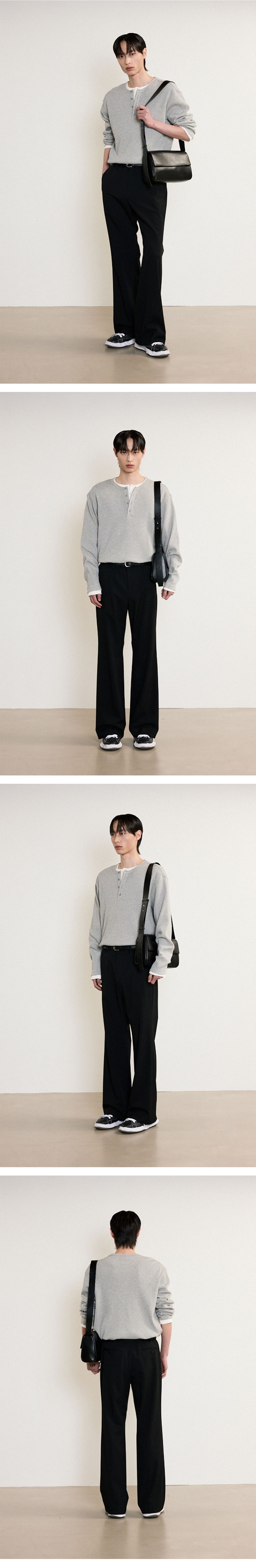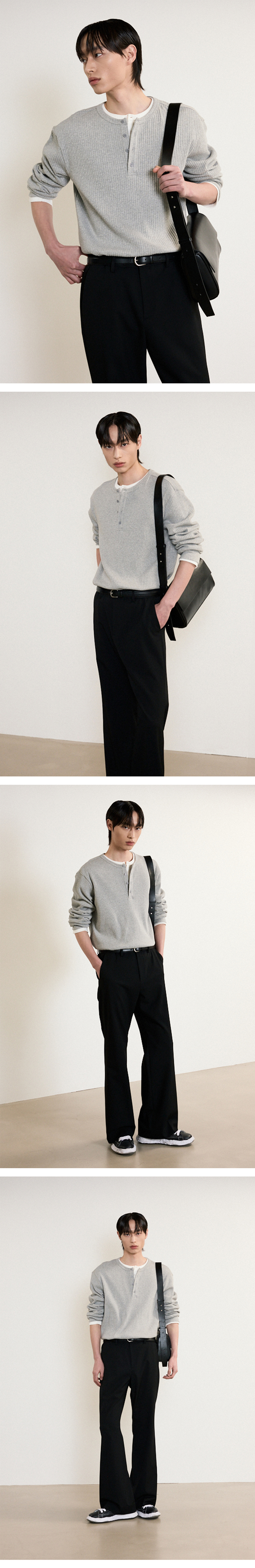 티엔지티 레귤러핏 리브드 헨리넥 롱 슬리브 티셔츠 그레이