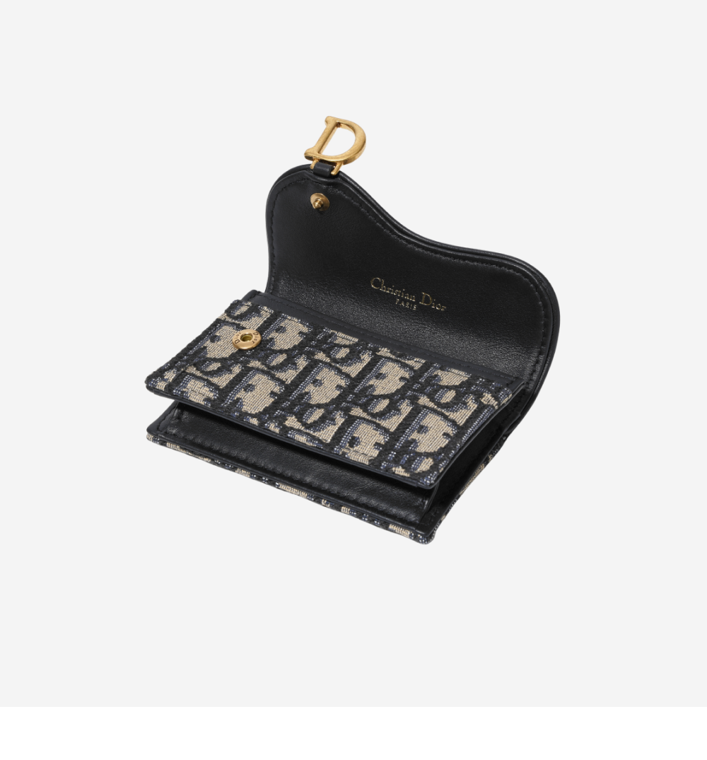 Dior Saddle Flap Card Holder Blue Dior Oblique Jacquard