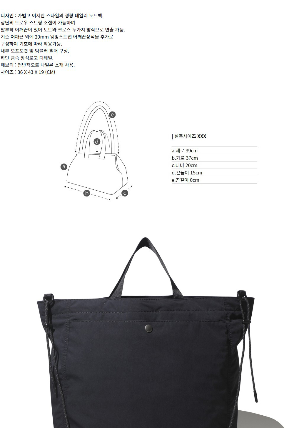 커스텀멜로우 나일론 투웨이 토트 백 블랙