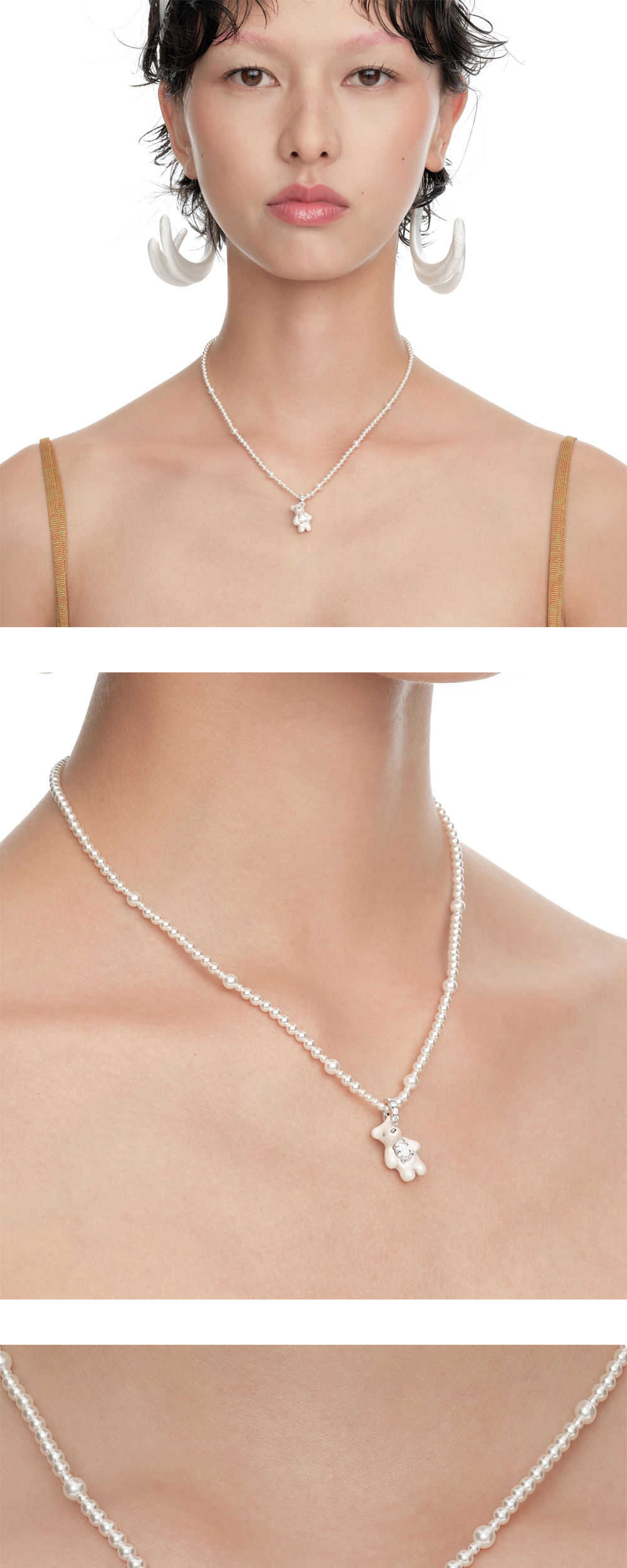 Yvmin Mini Bear Pearl Gradient Color Necklace White - 25SS