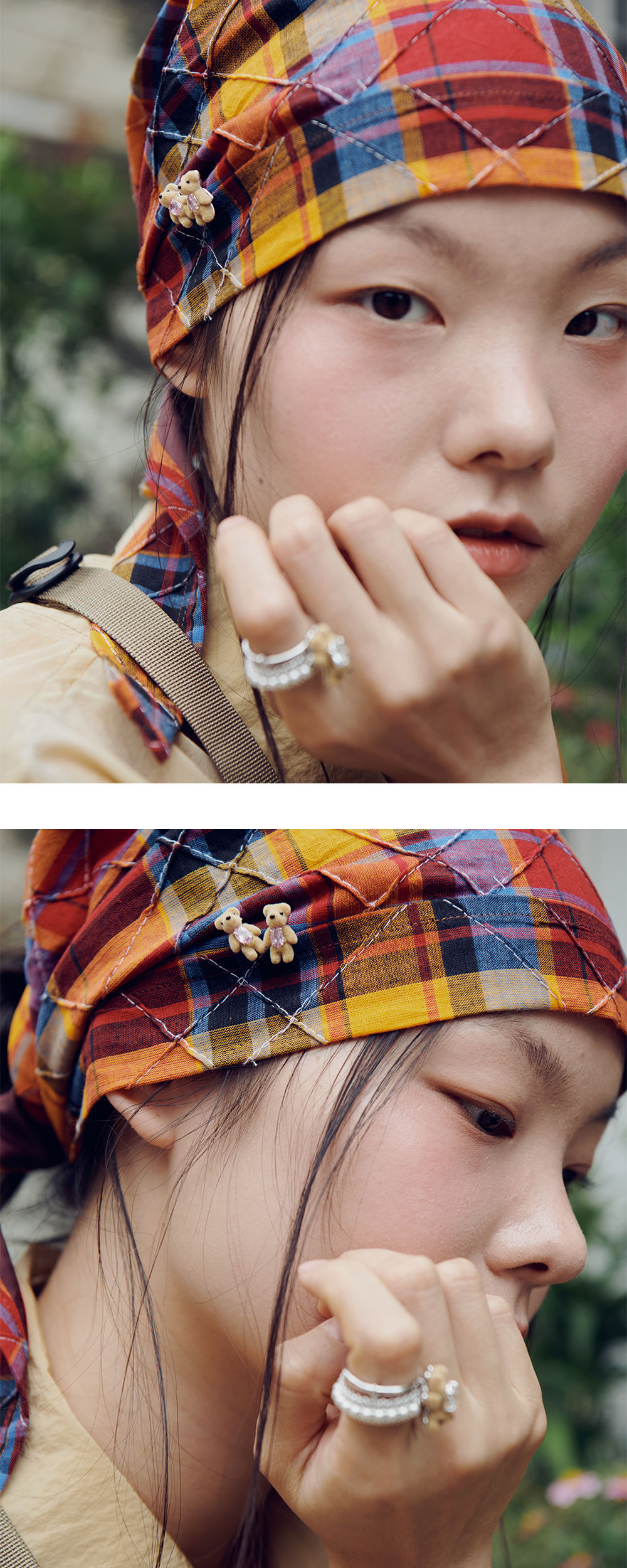 위민 미니 펄레센트 베어 멀티 레이어드 링 화이트 - 25SS