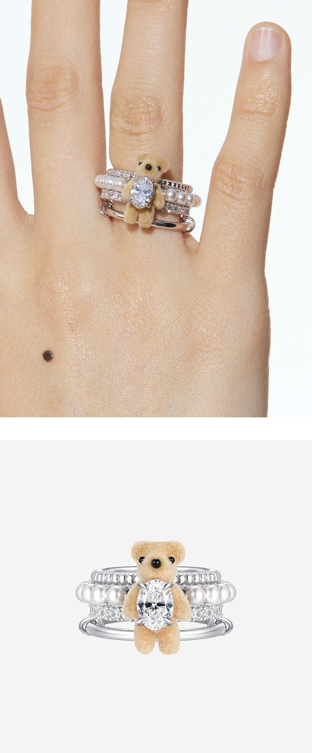 Yvmin Mini Pearlescent Bear Multi Layered Ring White - 25SS