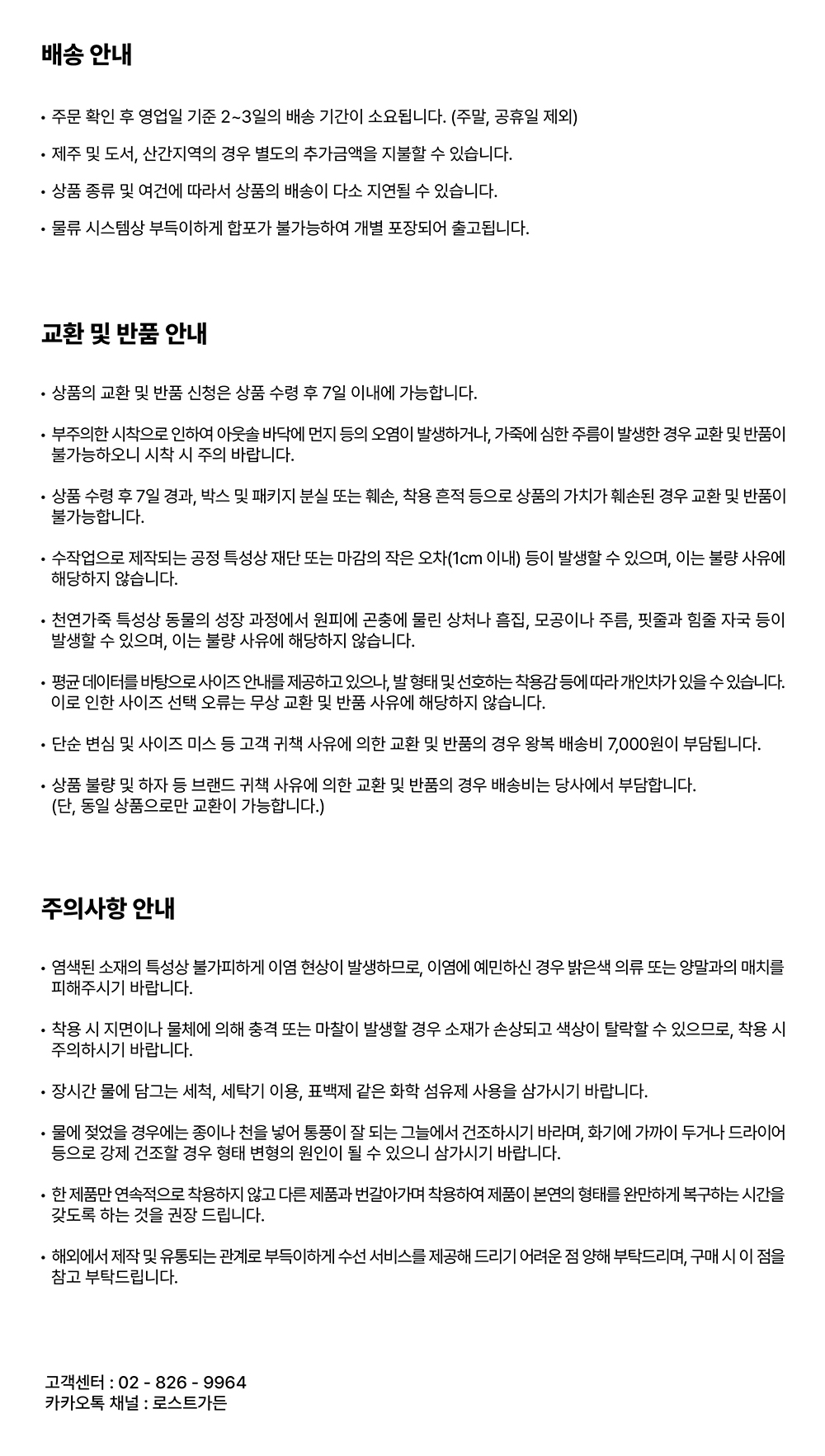 교환 및 반품 안내