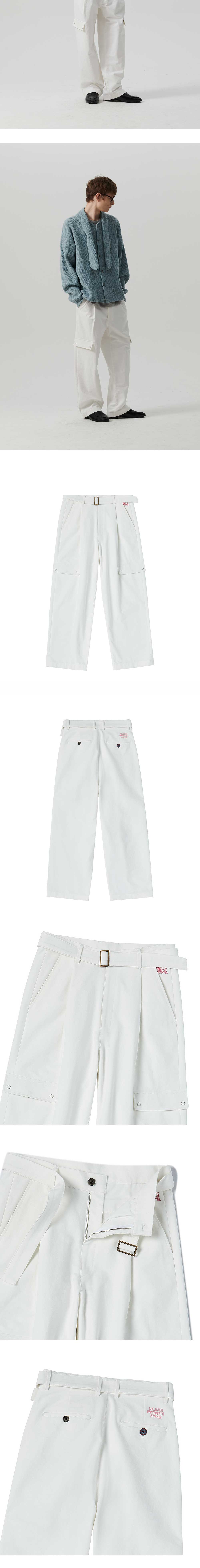 엔 아카이브 빈티지 가먼트 코튼 벨티드 카고 팬츠 화이트