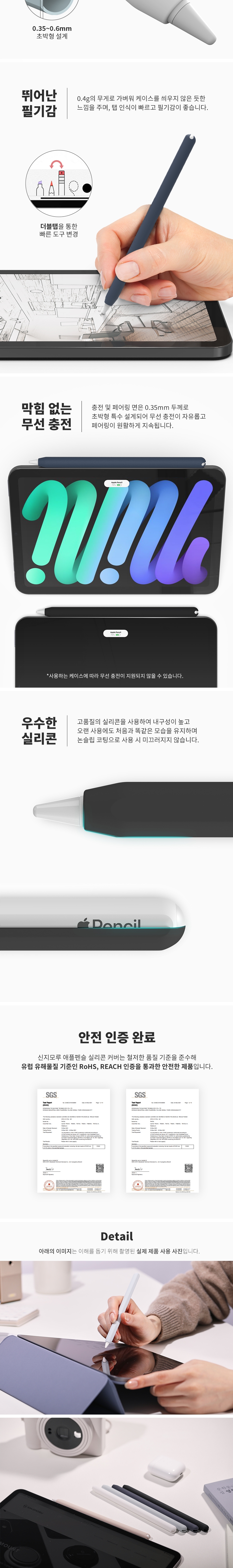 신지모루 애플펜슬 2세대/프로 실리콘 커버 케이스 아이패드 태블릿 터치펜 소프트 그립 홀더 블랙