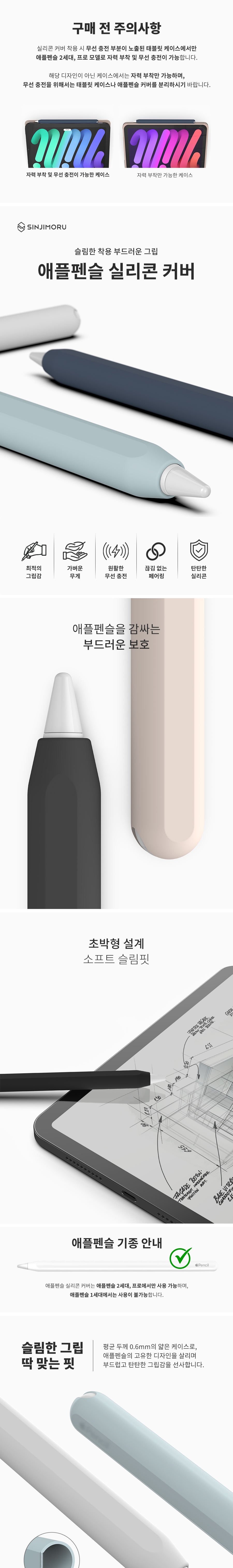 신지모루 애플펜슬 2세대/프로 실리콘 커버 케이스 아이패드 태블릿 터치펜 소프트 그립 홀더 네이비