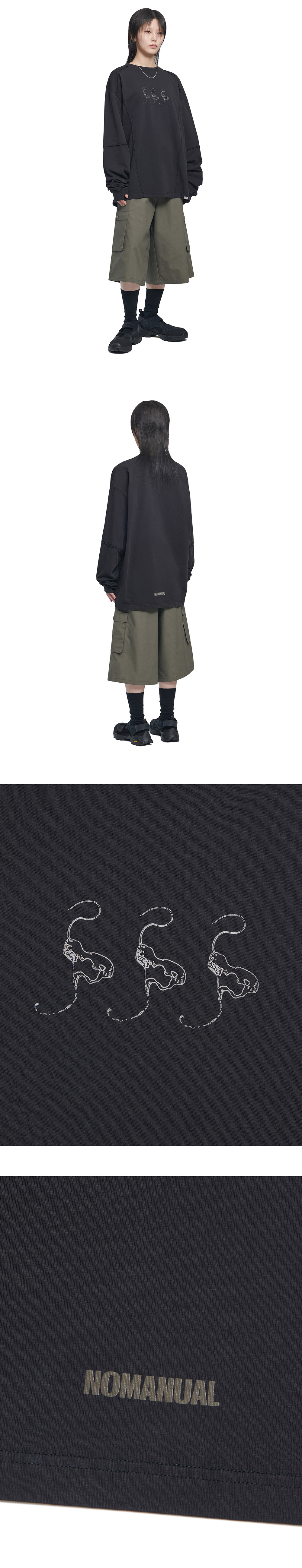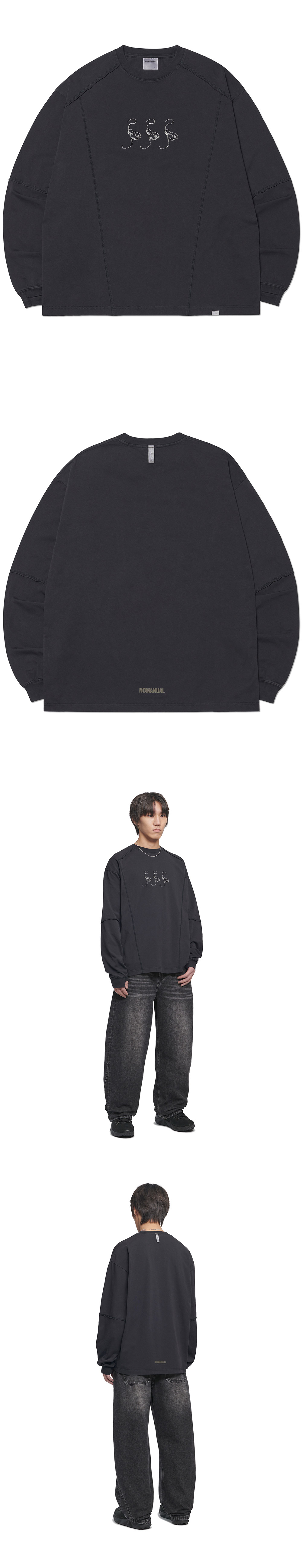 노매뉴얼 슬래시 롱슬리브 티 워시드 블랙