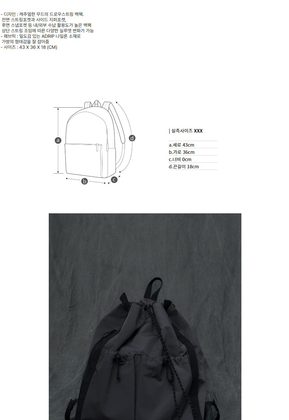 커스텀멜로우 드로우 스트링 백팩 그레이
