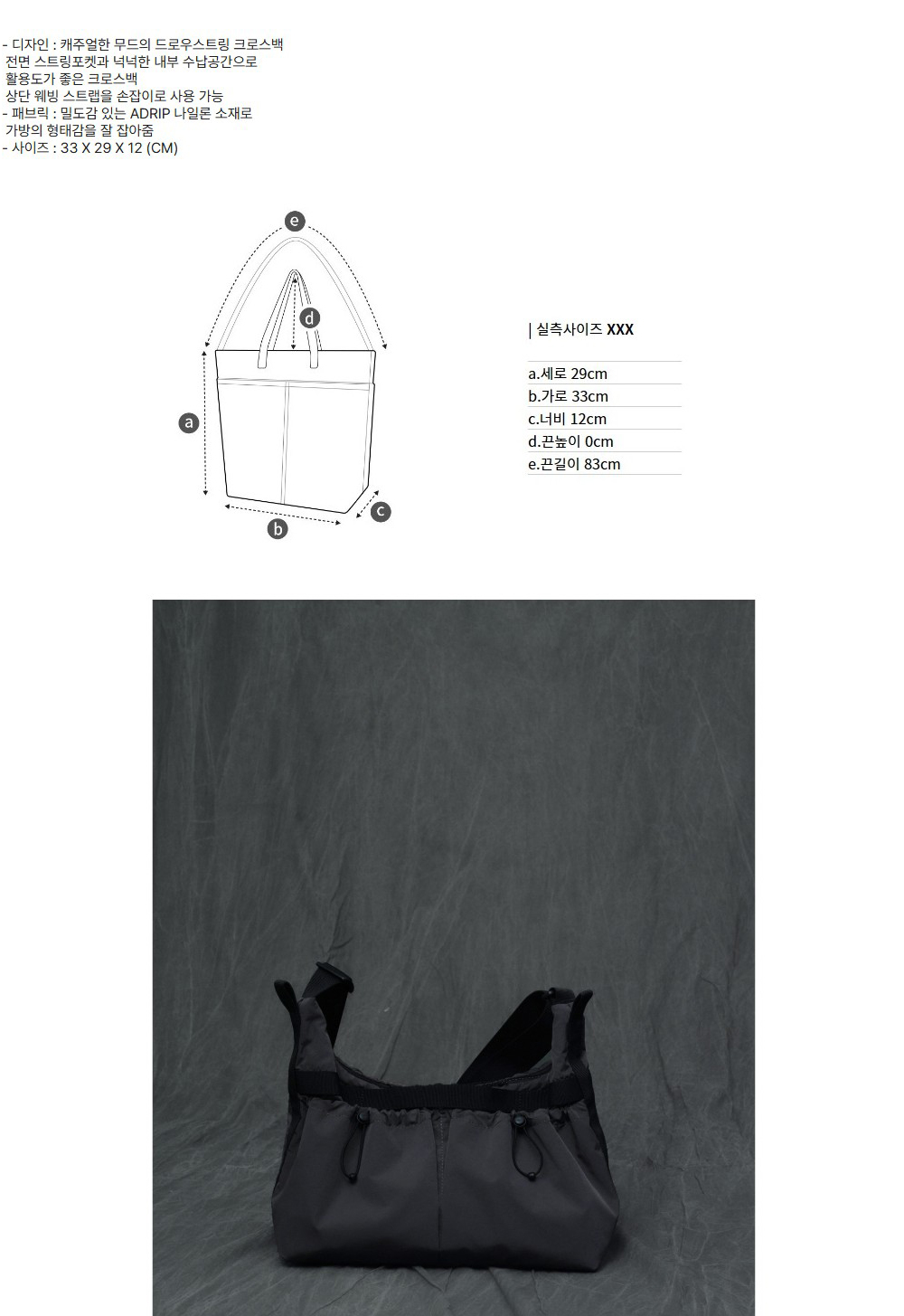 커스텀멜로우 드로우 스트링 크로스백 그레이