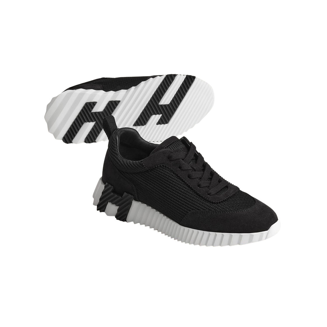 (W) Hermes Bouncing Sneakers Textured Mesh Suede Goatskin & Noir