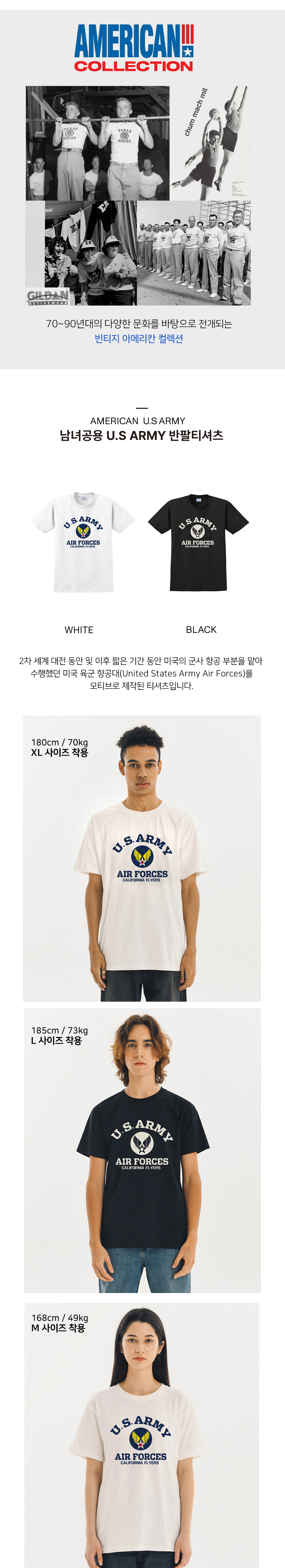 Gildan X 아메리칸 컬렉션 US_ARMY 티셔츠 화이트