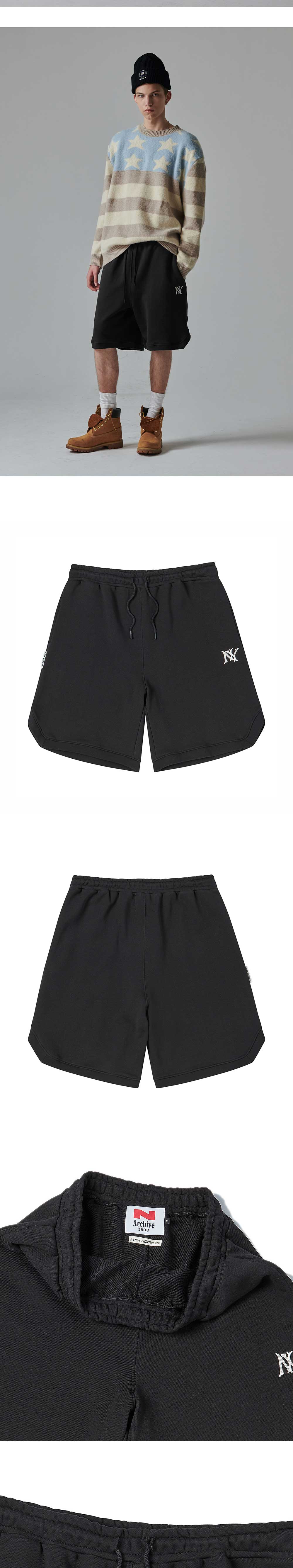 엔 아카이브 빈티지 NY 로고 헤비 웨이트 코튼 반바지 블랙