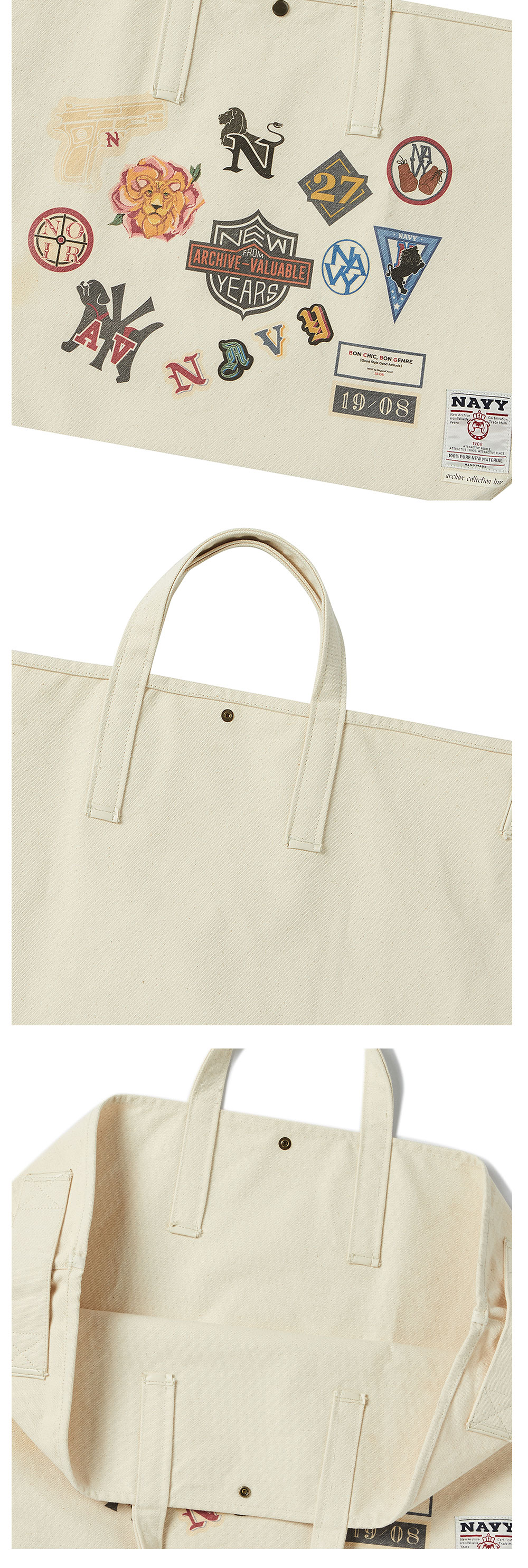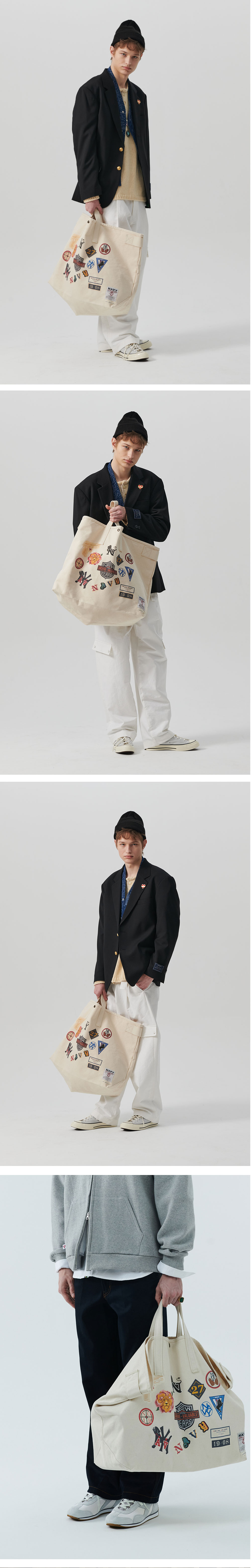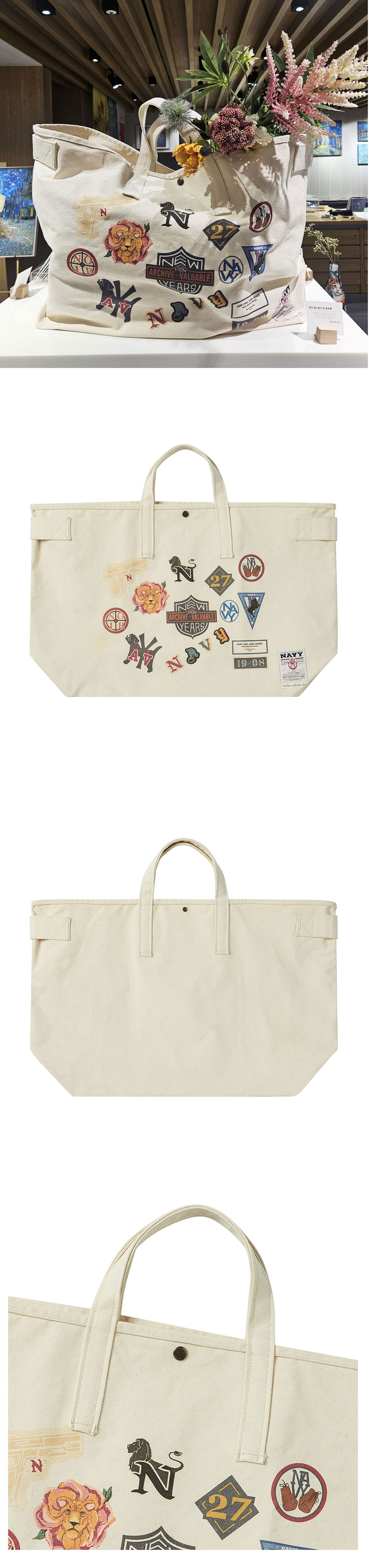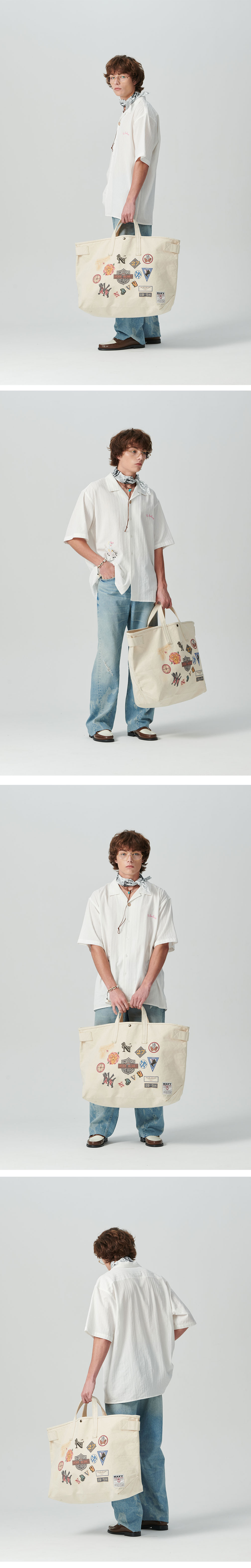 ㆍ컬렉션에서 선보인 하드 캔버스 코튼 소재로 제작된 빅 토트백 ㆍ다양한 빈티지 와팬을 디지털 프린트 방식으로 표현한 디테일 ㆍ빈티지 비건 레더로 마감한 마감재 ㆍ포인트 라벨 부착 ㆍ빅 사이즈로 다양한 수납 가능 ㆍ남녀공용 착용