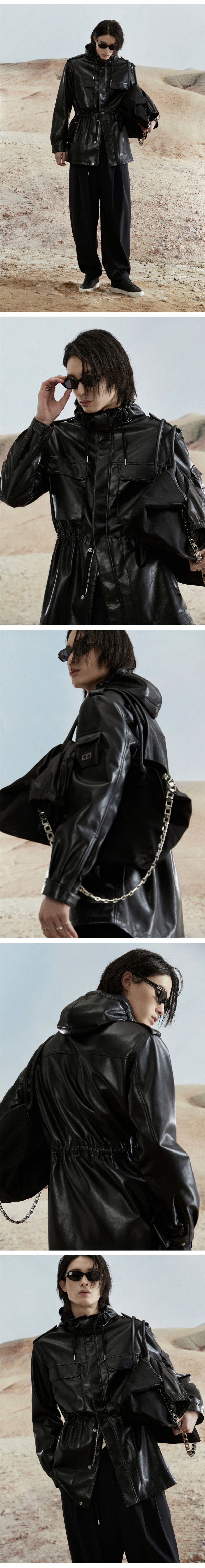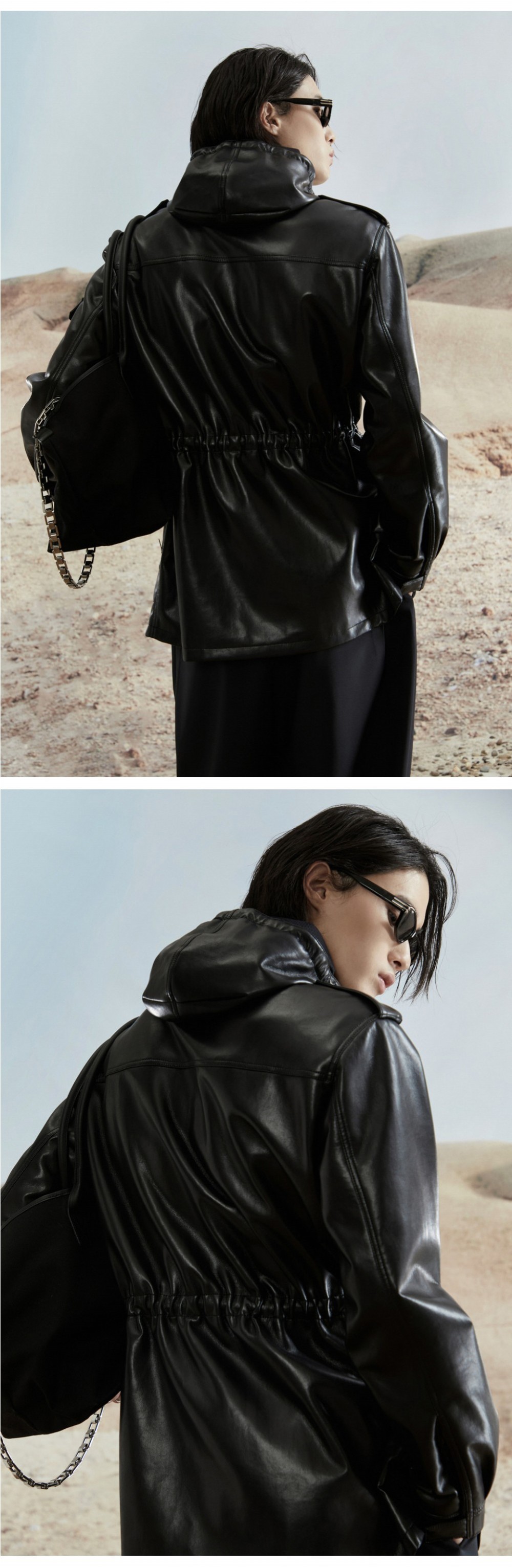 이로 에피오 롱 레더 사파리 점퍼 블랙