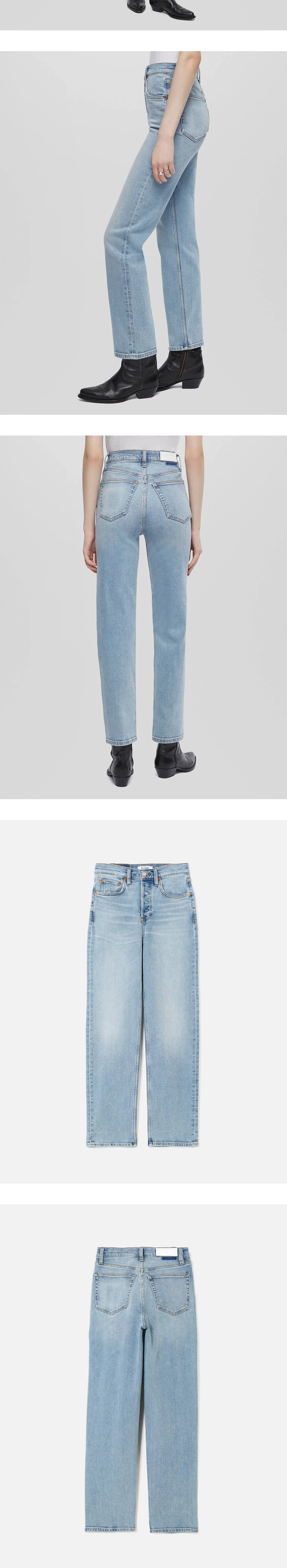 클래식한 70년대 스타일의 리던의 우먼 70s 스토브 파이프입니다. - 스트레이트 레그 진 - 밑단이 잘린 스타일 - 편안한 스트레치 데님에 빈티지 스타일의 스톤 워싱 - 클래식한 버튼 플라이 * 모델 25 사이즈 착용