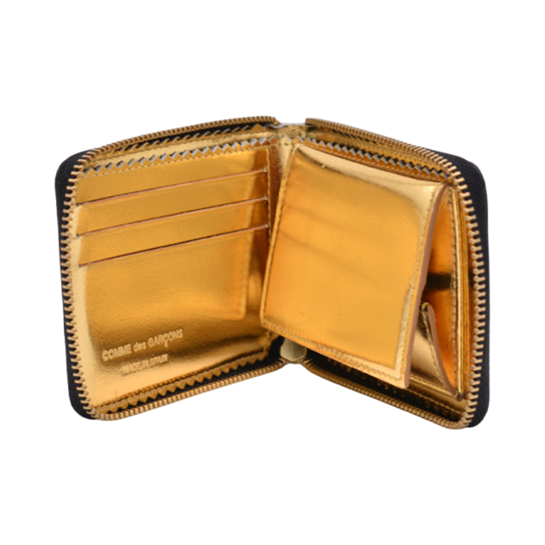 Comme des Garcons SA7100MI Mirror Inside Full Zip Around Wallet Black Gold